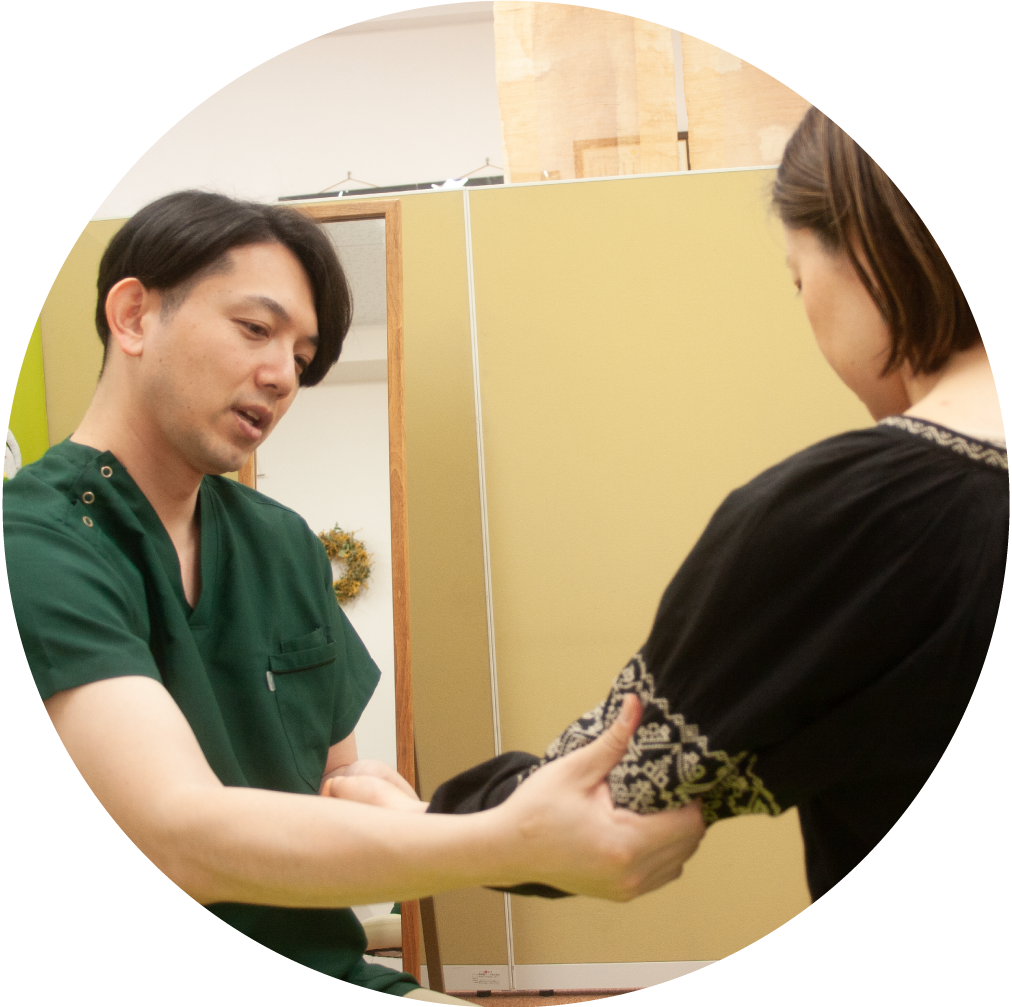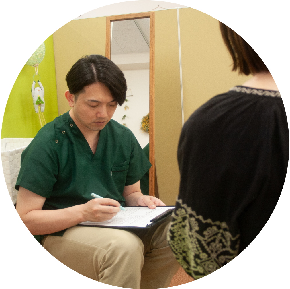施術をして終わりではなく、患者さんと一緒になって症状の根本的な解決を目指します。日常でできる動きや生活習慣を一緒に考えます。